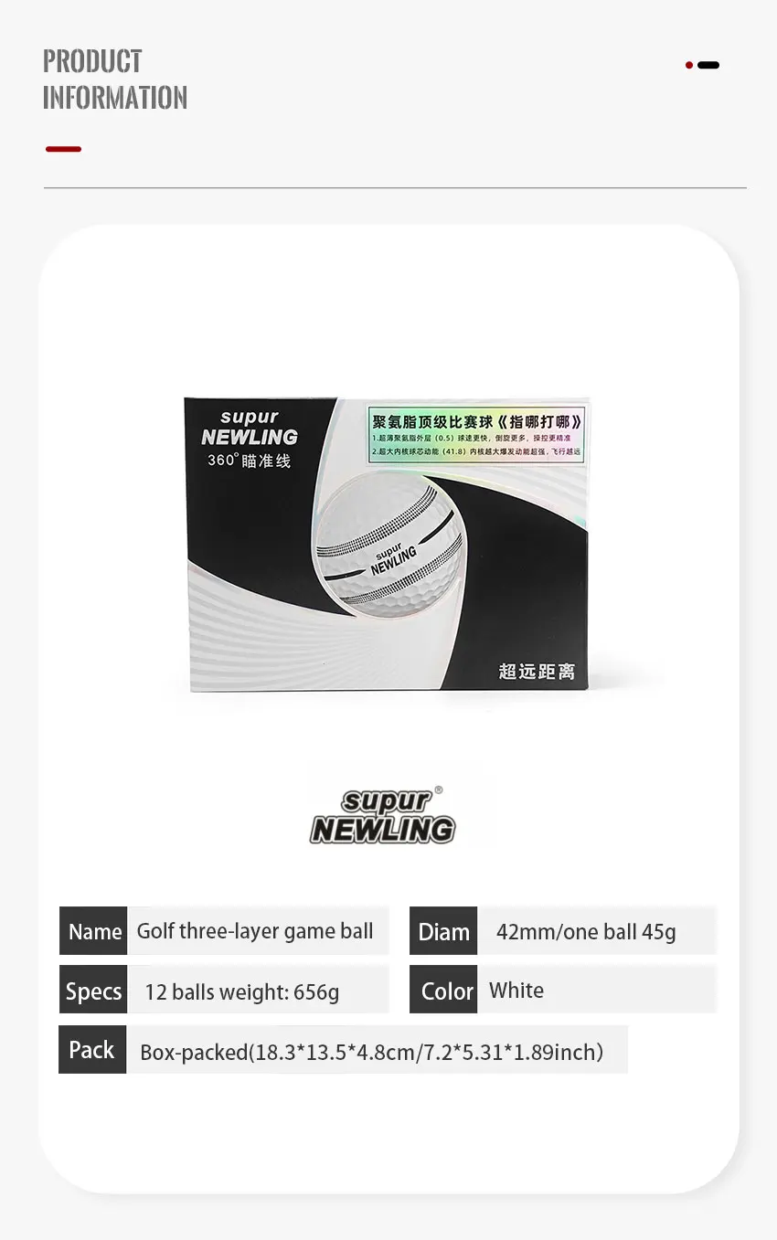 12pcs/box Supur NEWNING Golf Games Ball Three layer Ball for Professional Competition Game Polyurethane Material Gift for Golfer