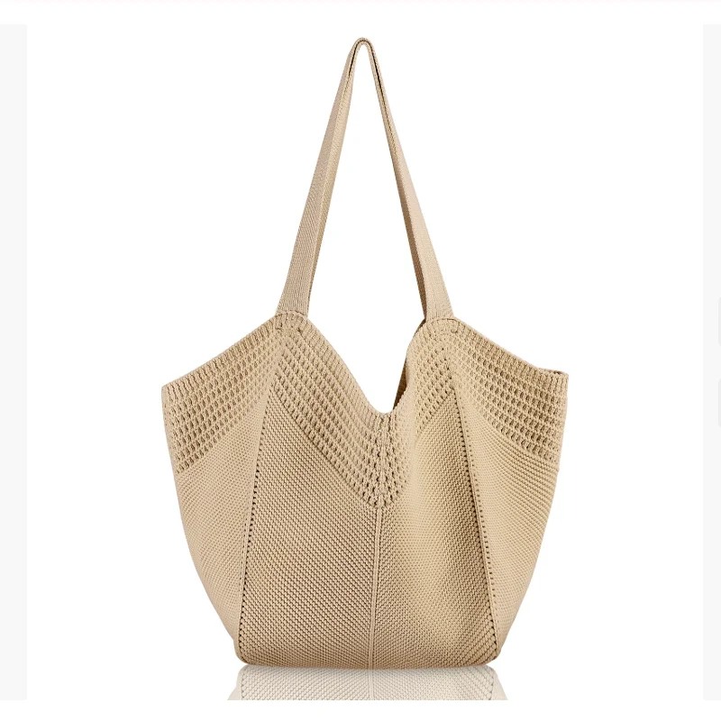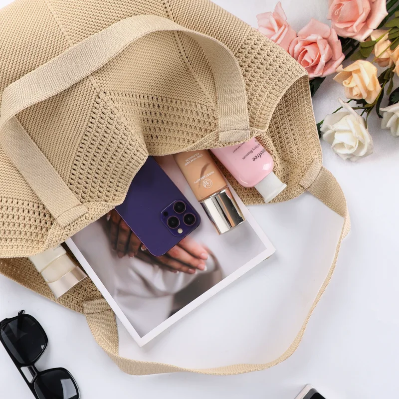 Leisure Large Capacity Polyester Knitted Bag Sweet Style Women’s Shoulder Bags Holiday Beach Tote Bag – Buy Knit Bag