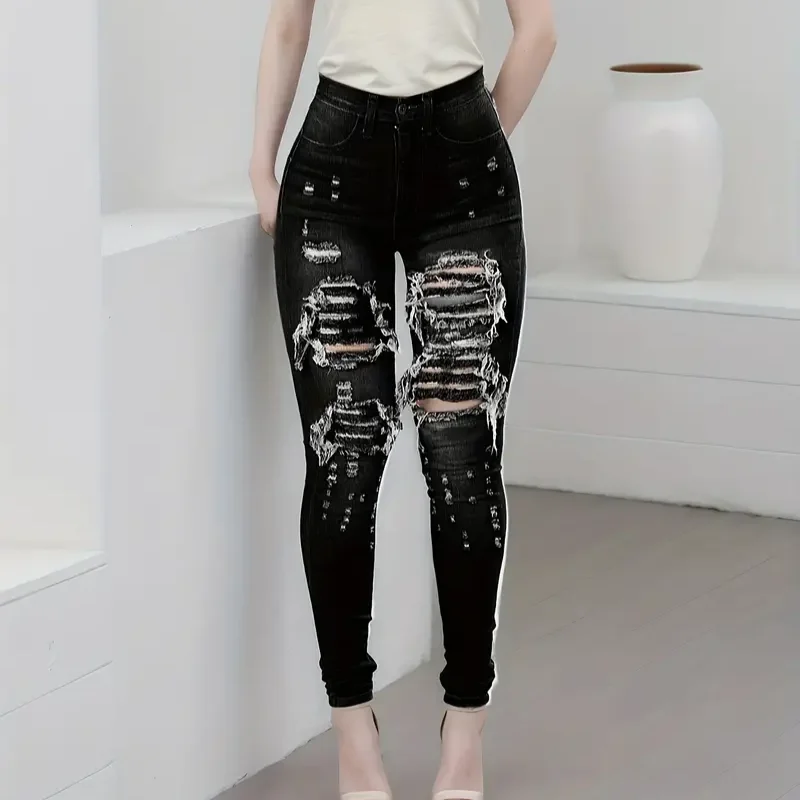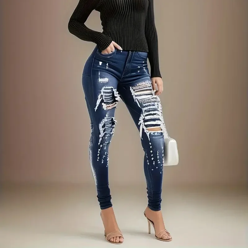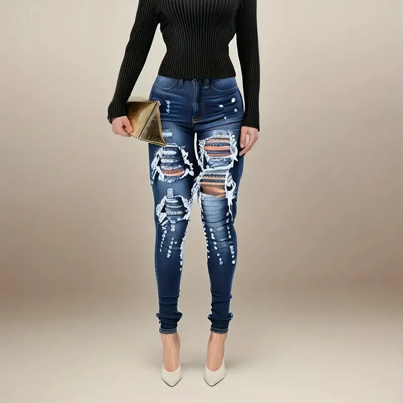Plus Size Women’s High Quality High Waist Stretchy Skinny Ripple Hole Jeans Vintage Trousers Made In China – Buy High Waist Women’s Jeans