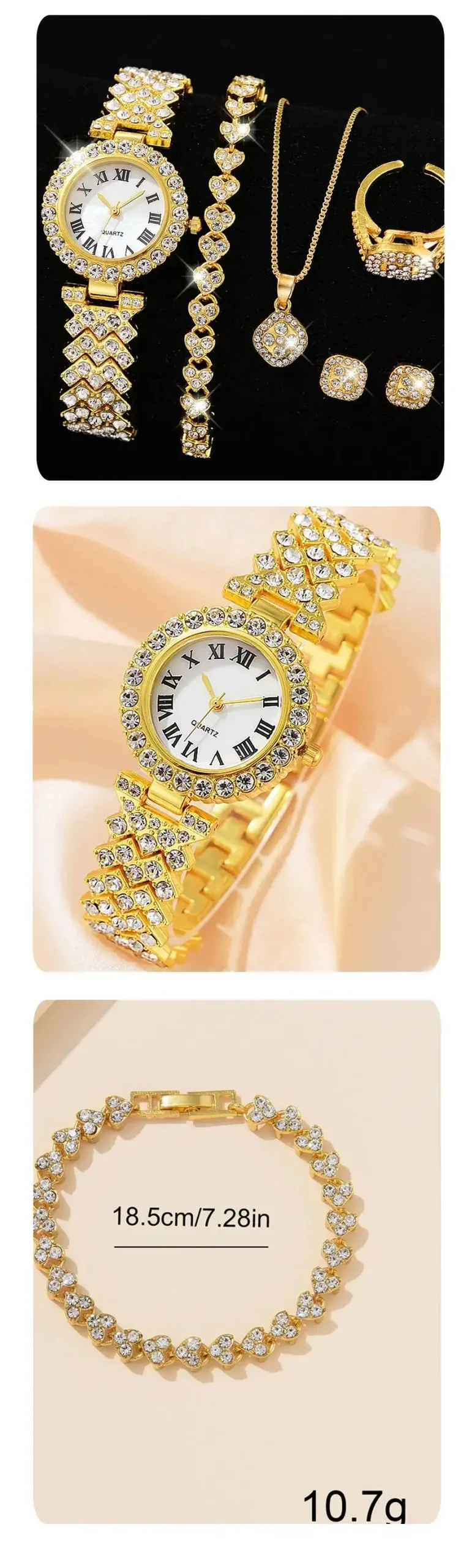 Best Selling Women’s Luxury Quartz Watch With Rhinestone Jewelry Set Custom Logo Earrings Necklace And Dial Display Pointer – Buy Luxury Watch Women 5pcs Set Ring Necklace Earrings Rhinestone Fashion Wristwatch Female Casual Ladies Watches Bracelet Clock