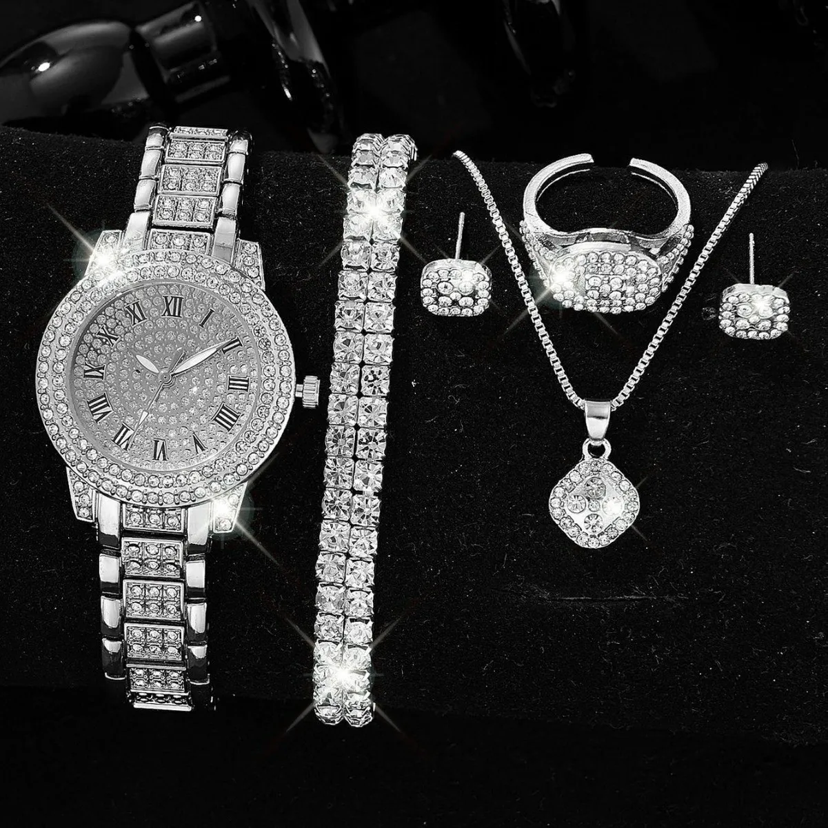 wholesale Luxury Bling Rhinestone Zircon Diamond Watch Set Crystal Necklace Earrings Bracelet Ring Set Jewelry For Women Relogio Product on Alibaba.com