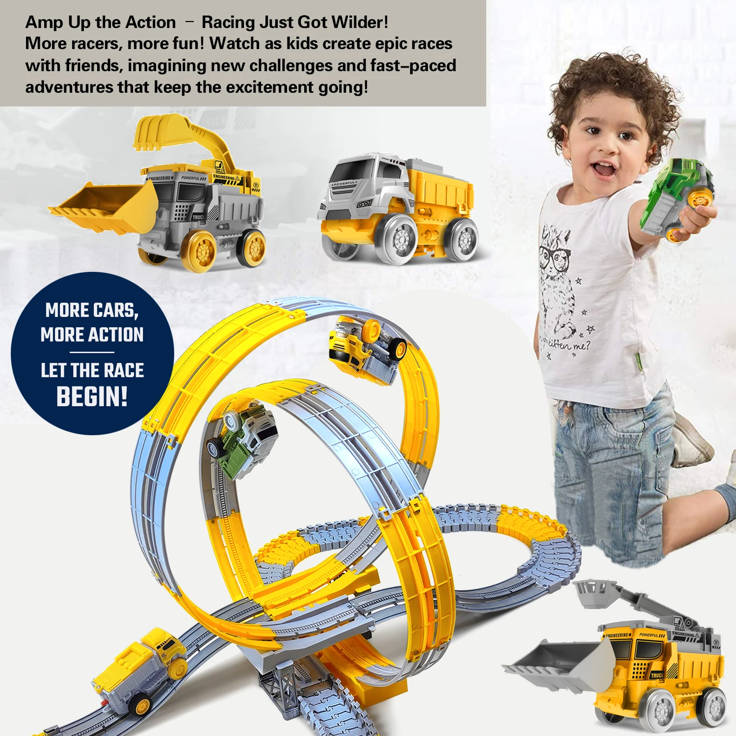 The toy features an exciting track system that allows for dynamic racing and stunt performances.