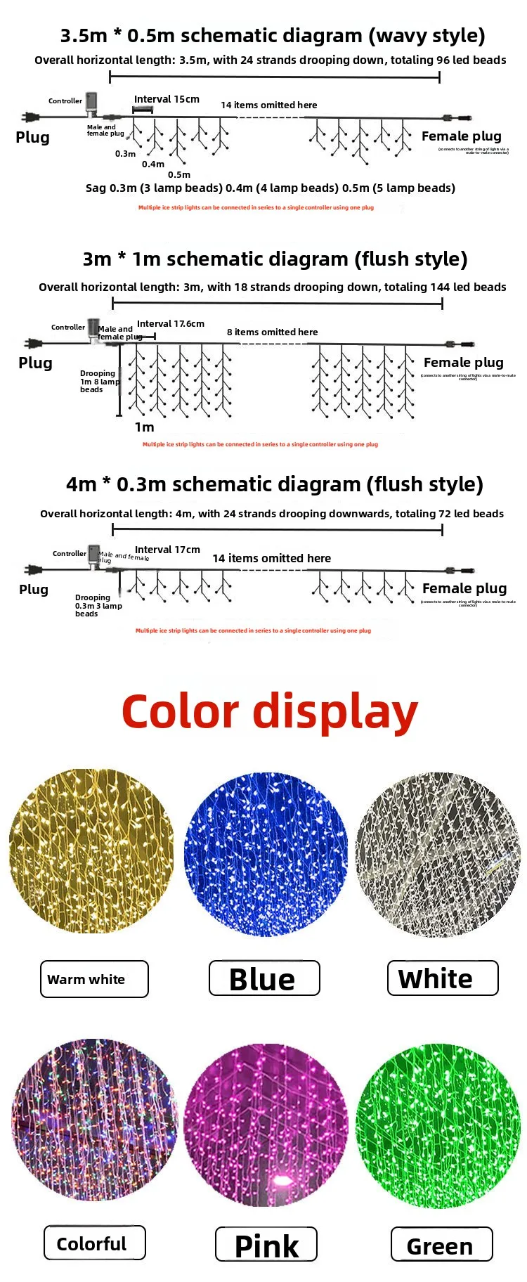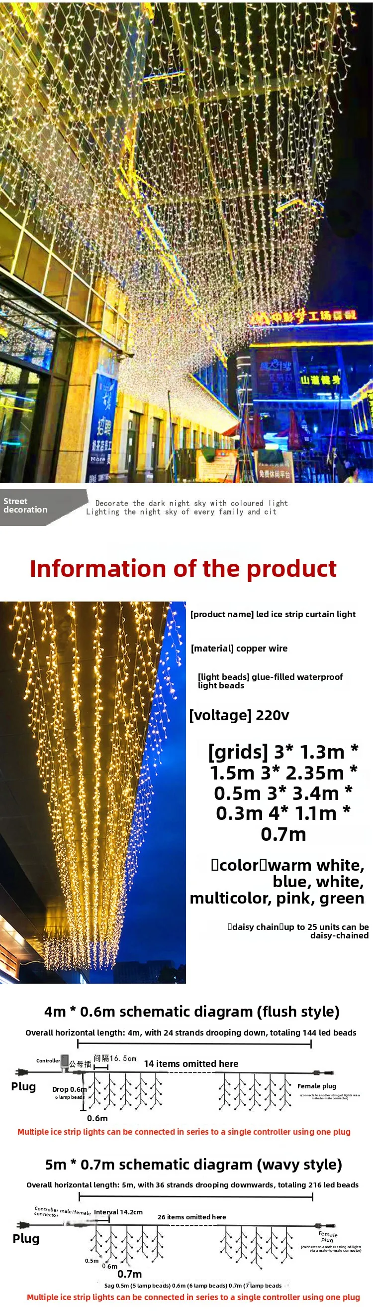 LEDIce Strip Waterfall Light String Gypsophila Waterproof Lantern Engineering Lighting Stall Hotel Scenic Decoration