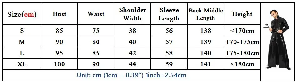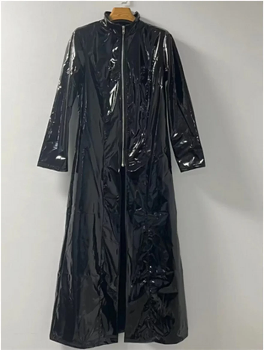 Men Women Pvc Leather Coat Trench Black Long CoatGothic Matrix Neo Faux PU Leather Coat Cosplay Costume Clubwear Plus Size