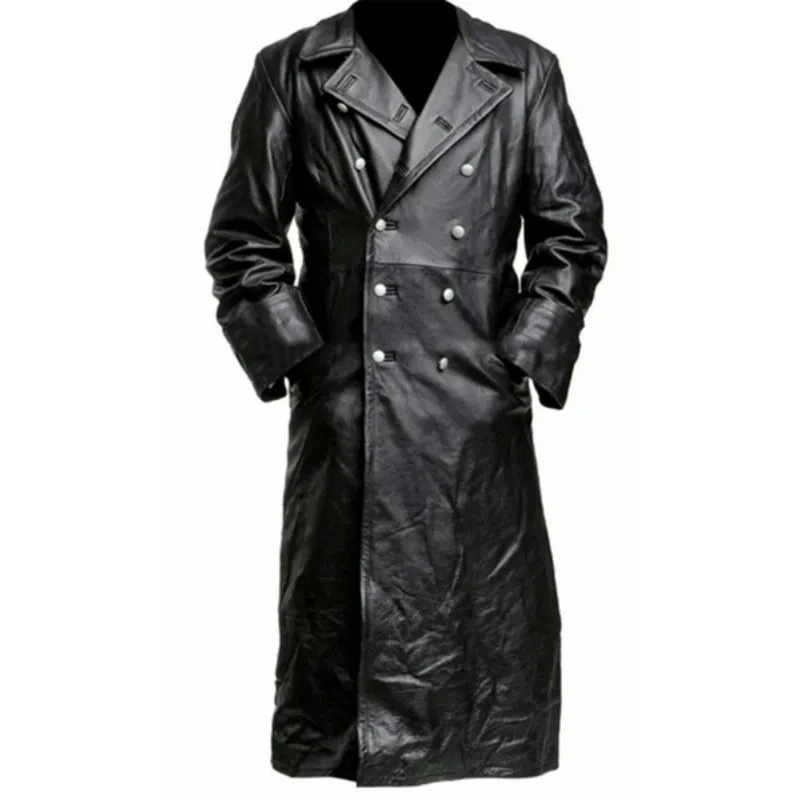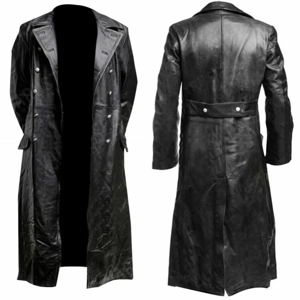 MEN’S GERMAN CLASSIC WW2 MILITARY UNIFORM OFFICER BLACK LEATHER TRENCH COAT