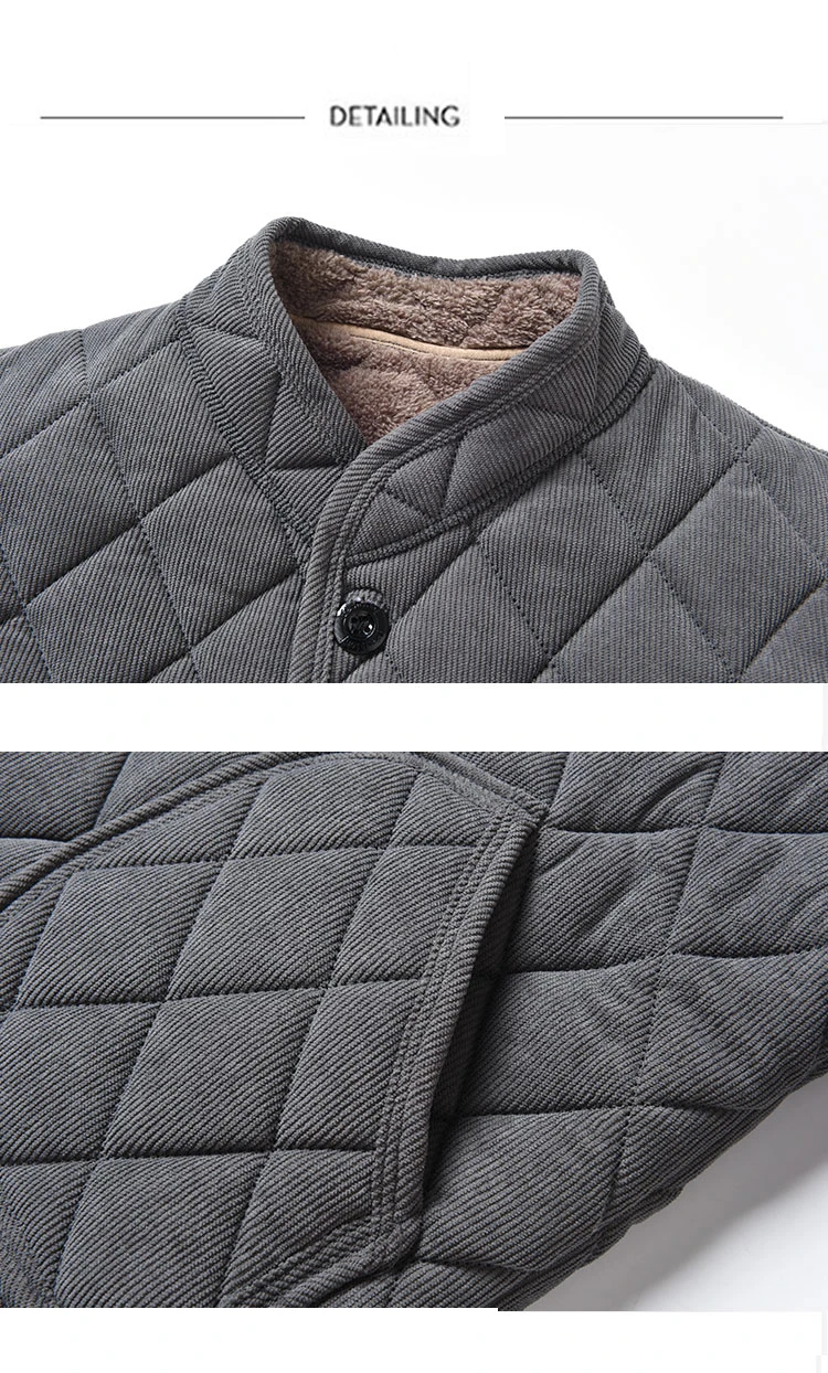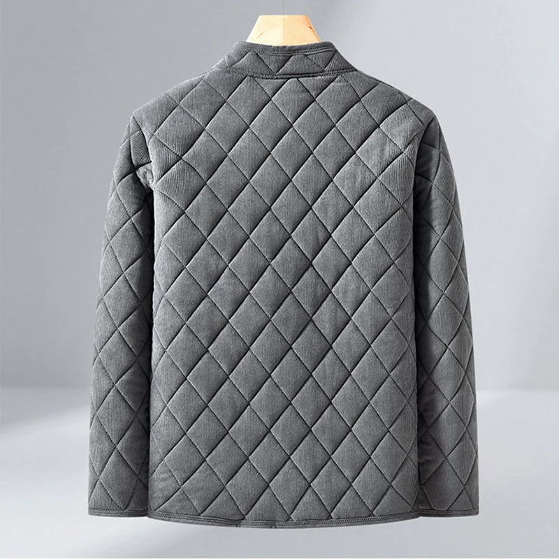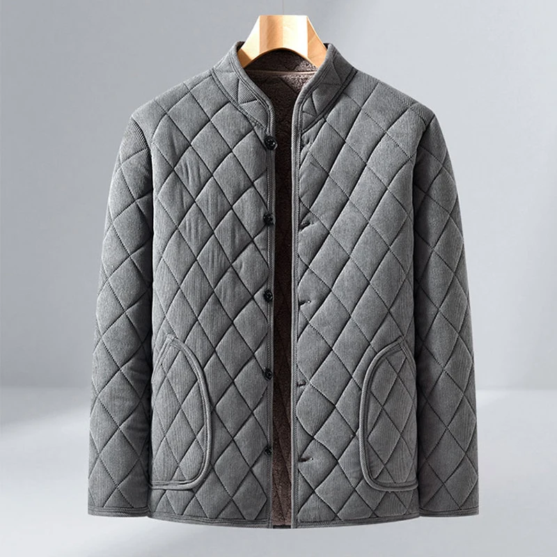 Mens Winter Jacket Windproof Thickened Padded Jacket Casual Diamond Warm Fleece Lined Coat Middle-Aged Dad’s Solid Outdoor Wear