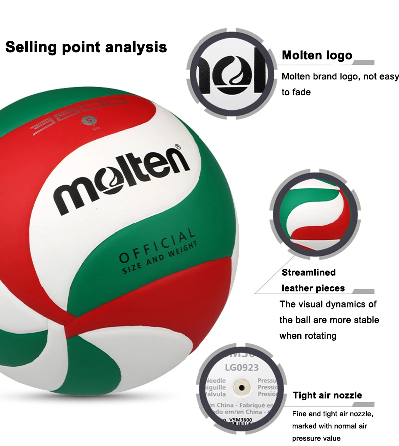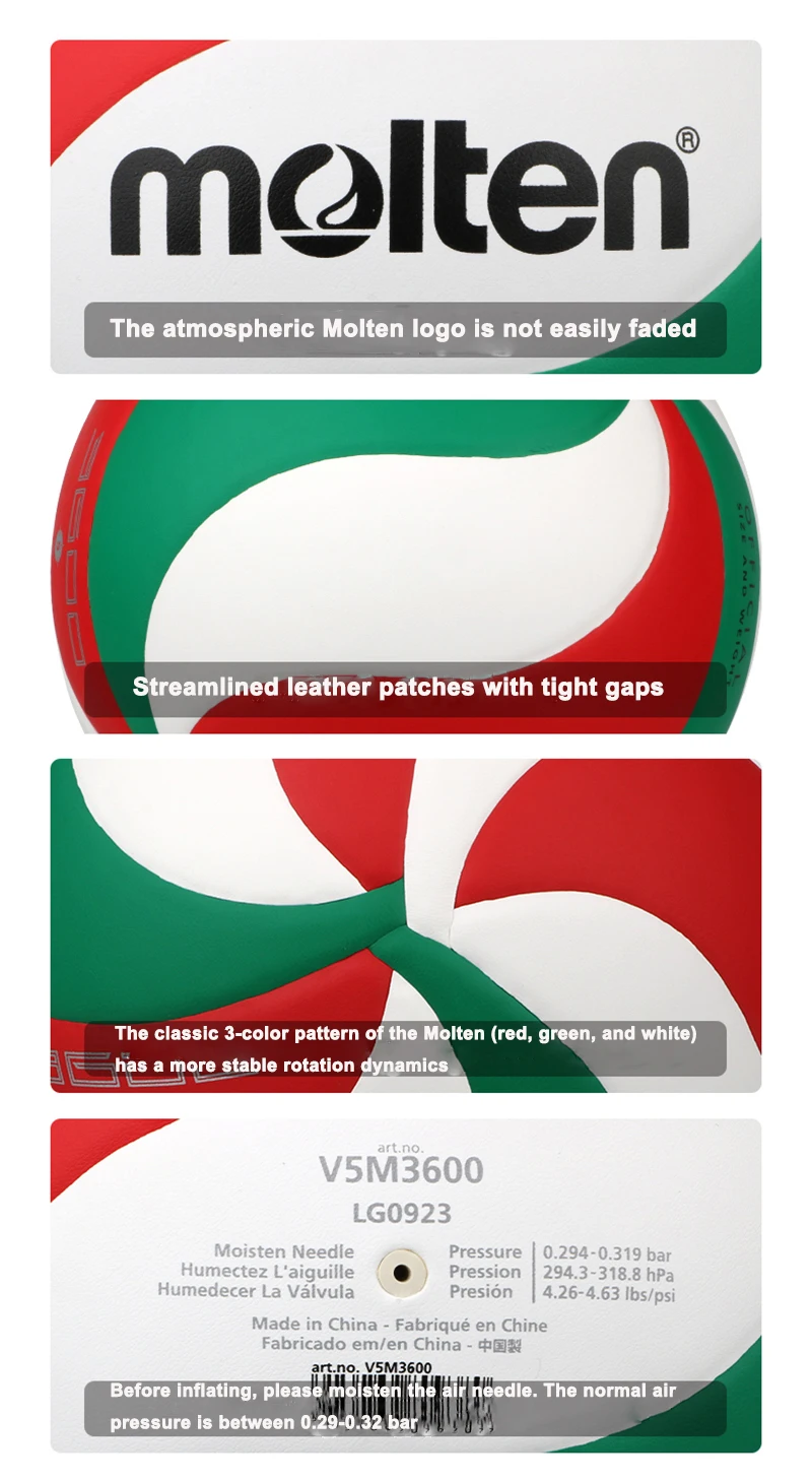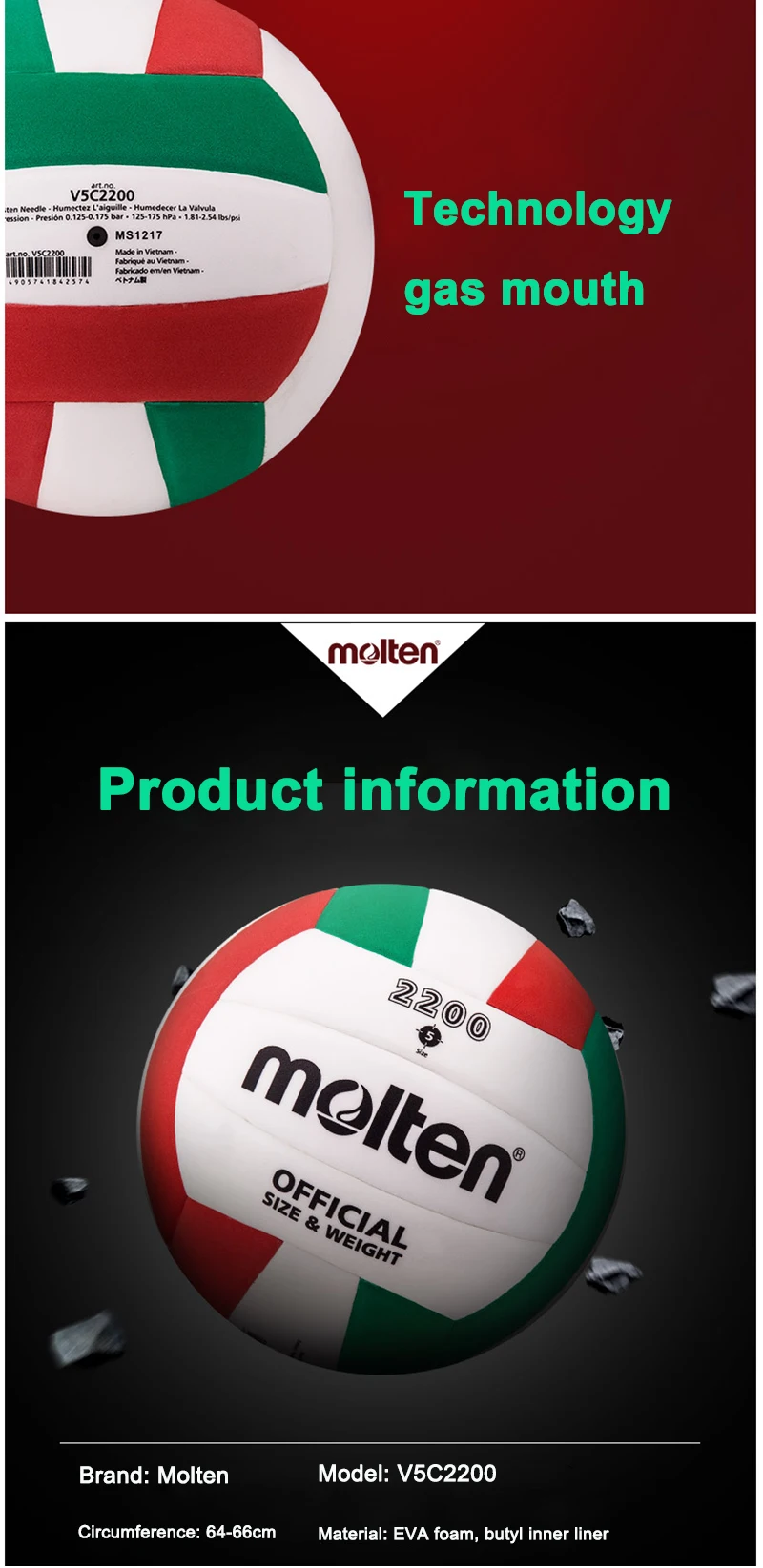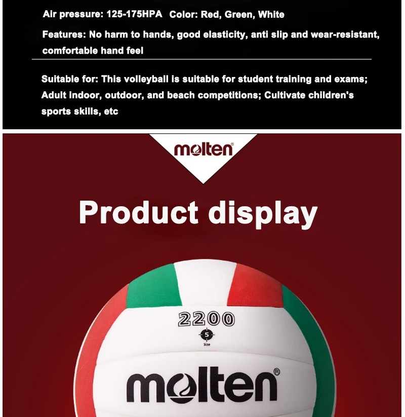 Molten Original Volleyball Balls Standard Size 5 Soft PU Wear-resistant Outdoor Indoor Sports Match Training Seamless Voleibol