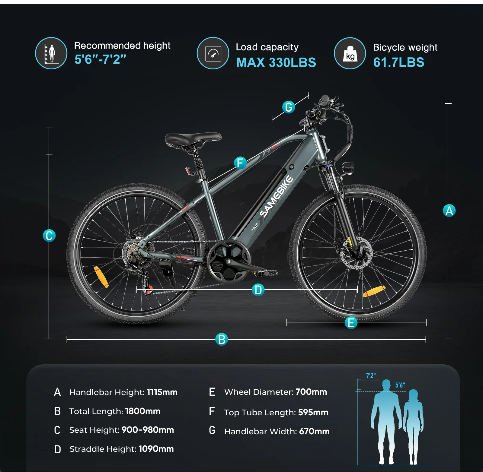 SAMEBIKE 27.5 Inch 36V 15AH Lithium Battery 7 Speeds Off Road Electric City Bicycle 250W City Ebike
