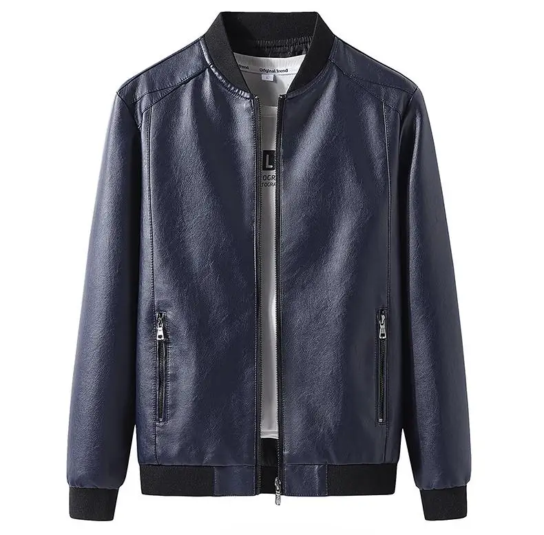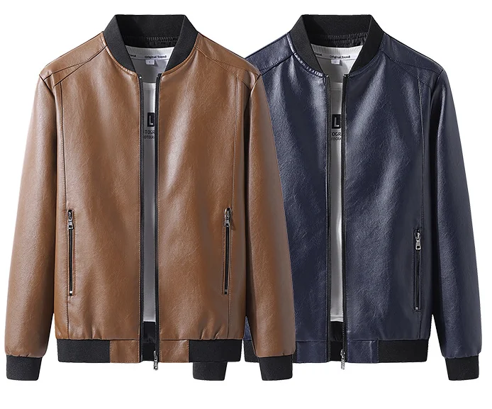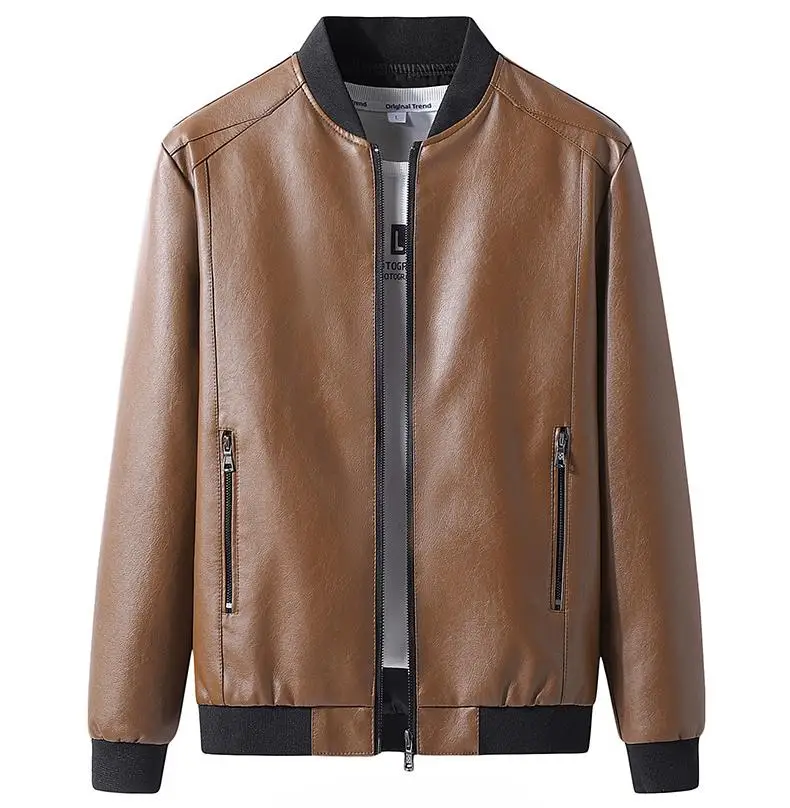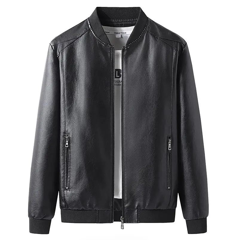 Sping Autumn Motorcycle Leather Jacket For Men Plus Size Baseball Jacket Fashion Business Casual Slim Fit Handsome Leather Coat