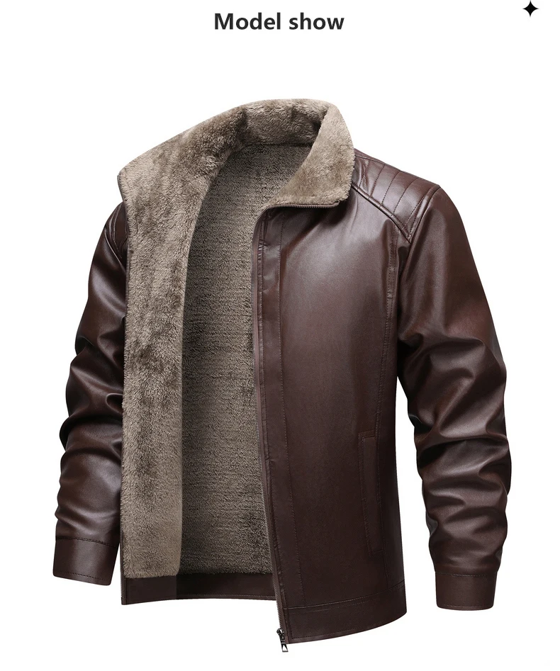 Winter Fleece-lined Leather Jacket Men 2025 New Coat Men’s Top Windproof Leisure Mens Streetwear Zipper Retro Moto Biker Jackets